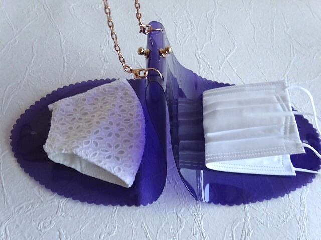 チェーン付きで吊り下げることが出来る小さなバッグみたいなマスクケースです。