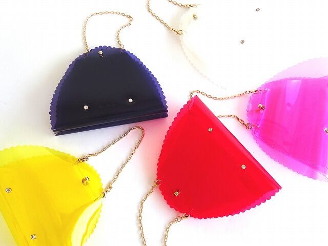 スカラップカットの縁が何ともキュートでクリスタルゴールドの金具が華やかなデザインです。