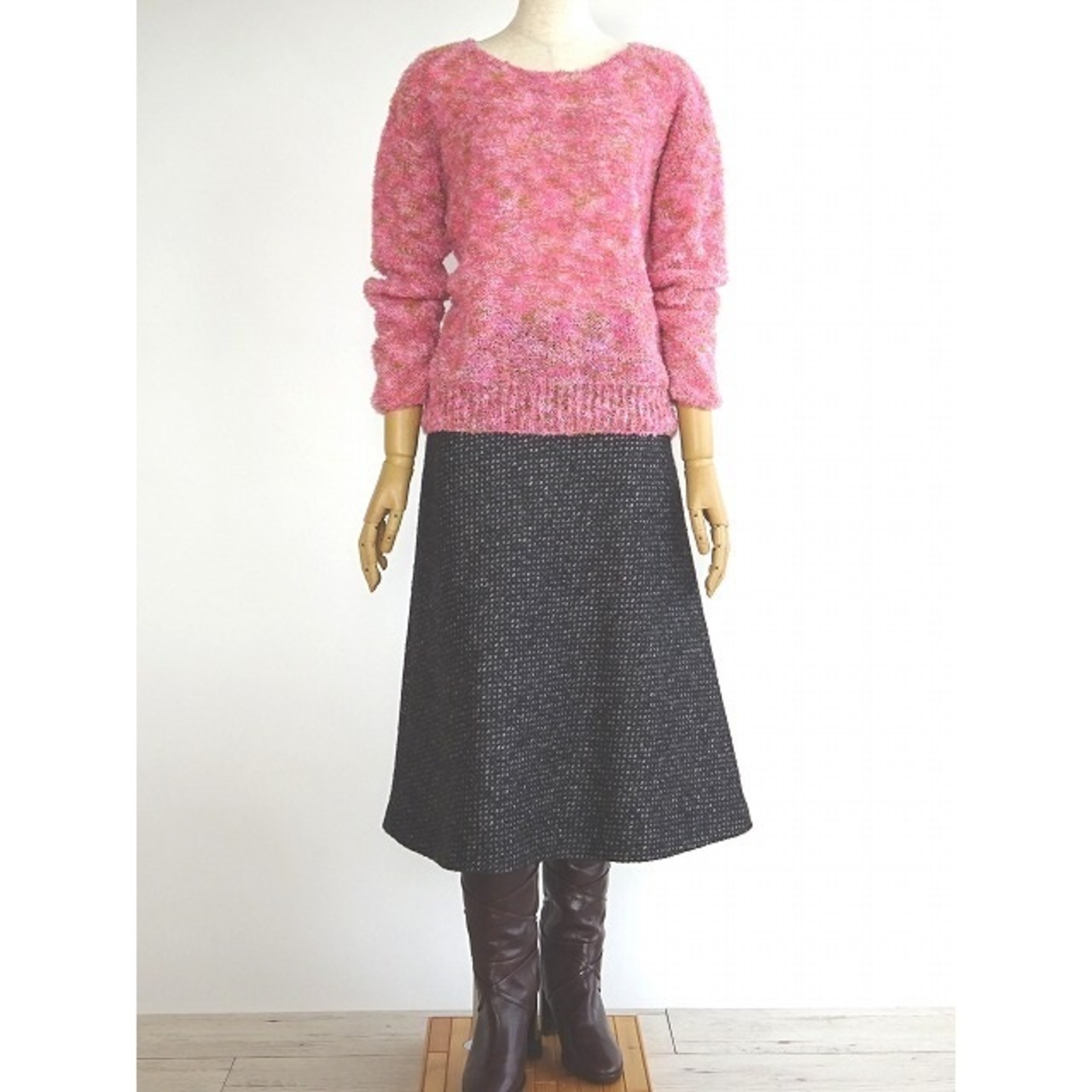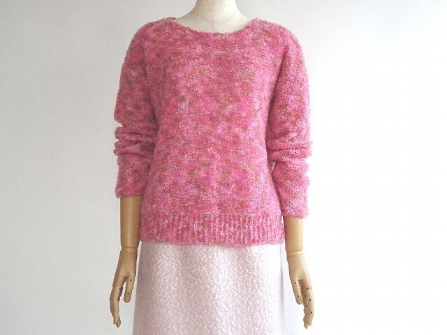 フワ軽 アルパカ混ループヤーンのMIXピンクプルオーバー