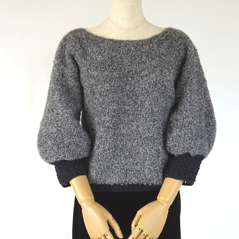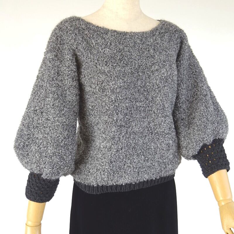 アルパカ混ループヤーン グレーグラデーションのパフスリーブセーター