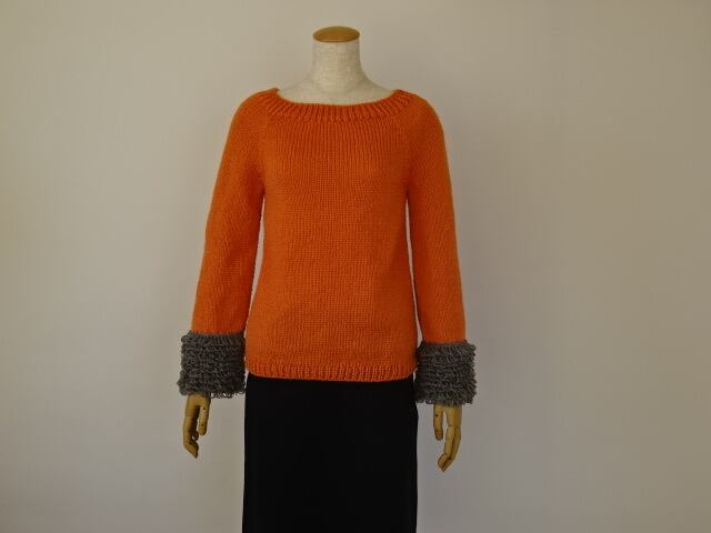 1枚で華やか!クルクルループ袖のセーター・オレンジ