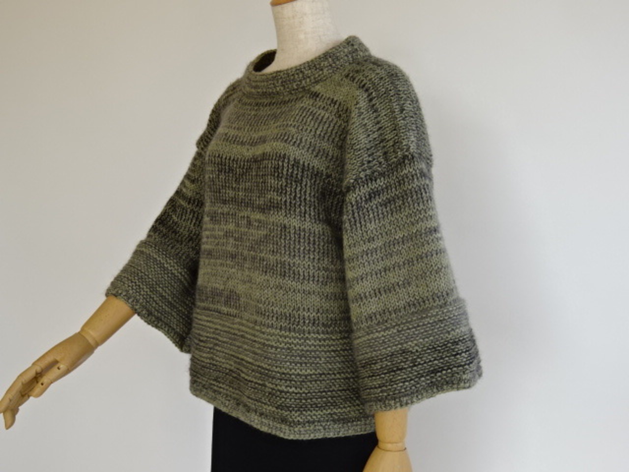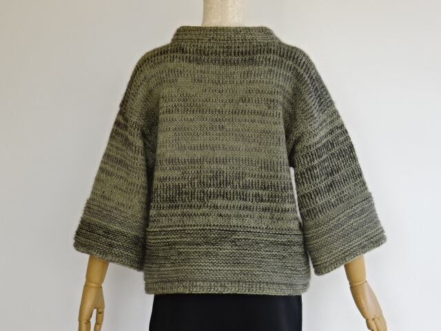 スモーキーグリーンとグラデーションキットモヘヤのニット
